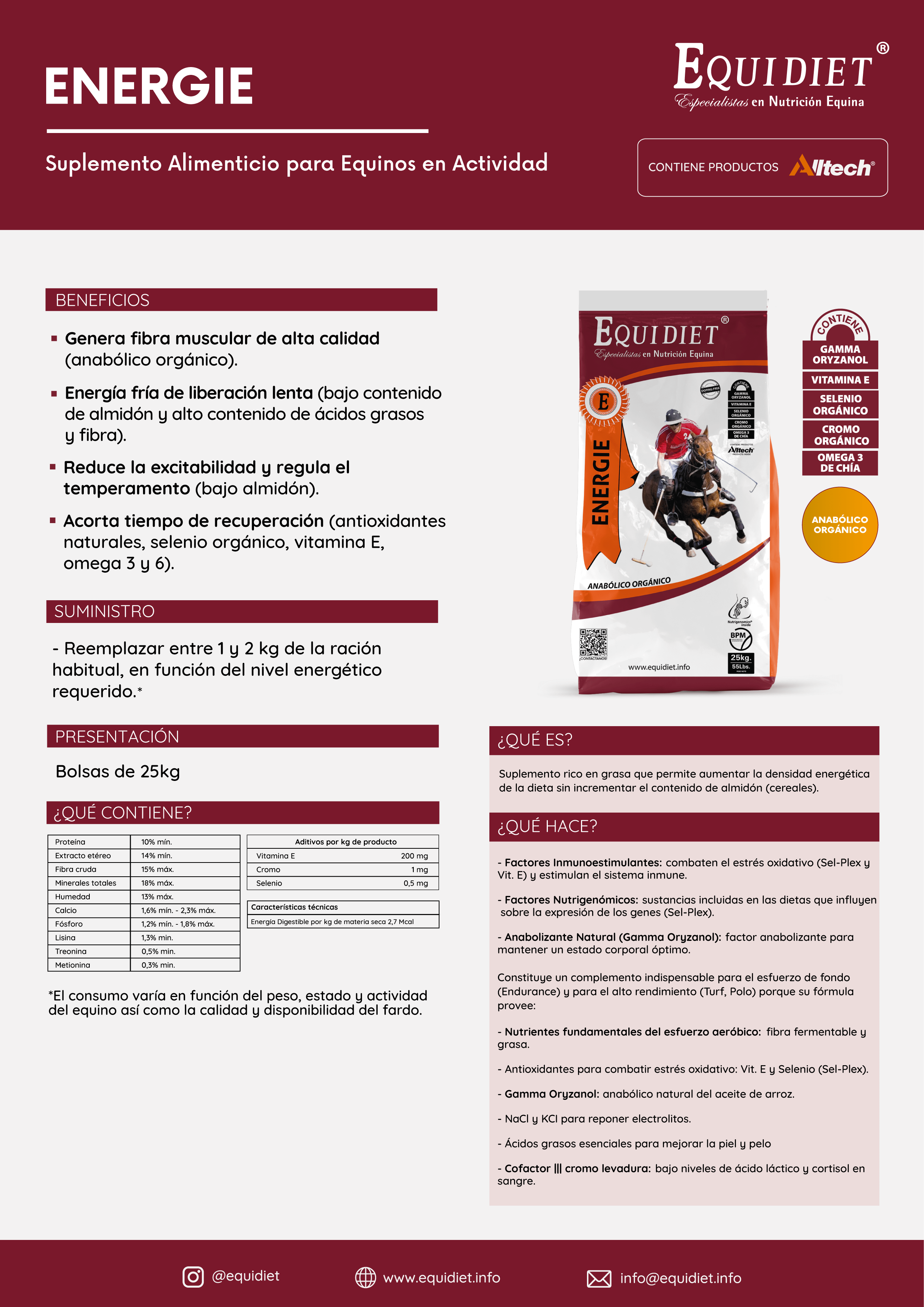 Categoría: Suplementos Etiquetas: Alto Rendimiento, Competencia, Energie, Equidiet, Equidiet Energie, Gamma Oryzanol, Polo, Remate, Turf