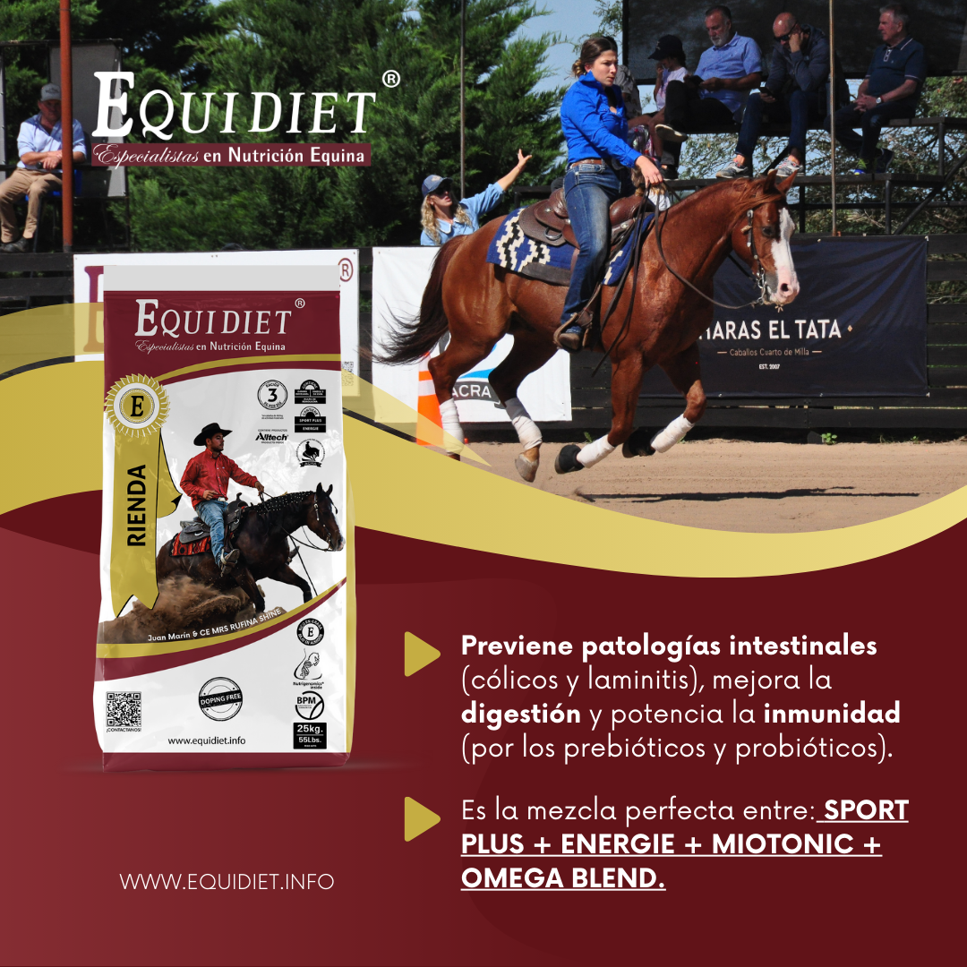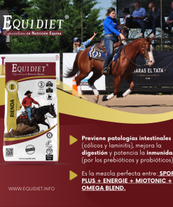 - Previene patologías intestinales (cólicos y laminitis), mejora la digestión y potencia la inmunidad (por los prebióticos y probióticos).