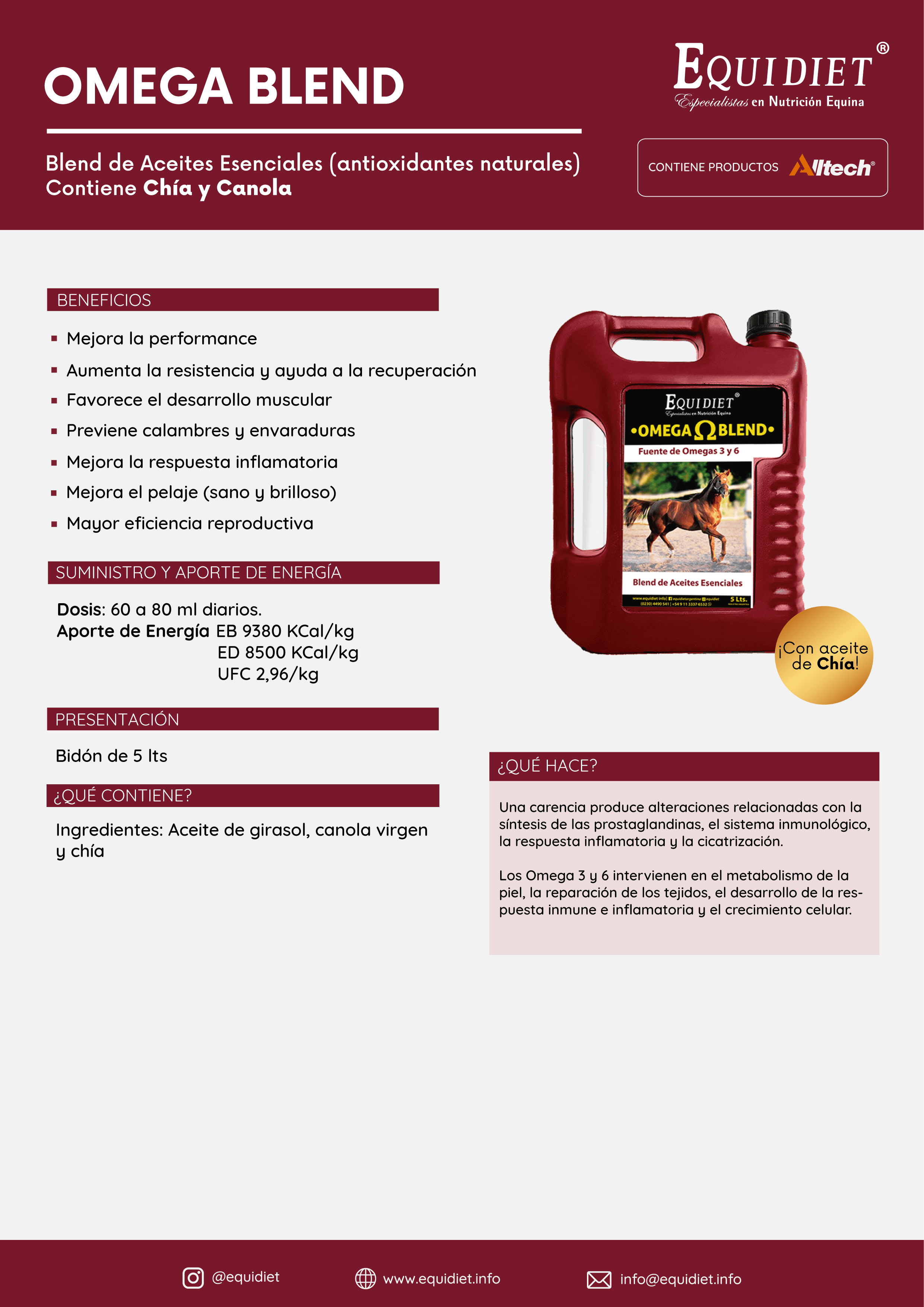 Categoría: Suplementos Etiquetas: Aceite de Canola, Aceite de chia, Aceite de girasol, Aceites esenciales, antioxidantes, antioxidantes naturales, Blend de aceites, caballos, Caballos criollos, Canola, Criollos, Equidiet Omega Blend, Equinos, Girasol, Mix de aceites, Nutricion Equina, Omega 3, Omega 6, Omega Blend
