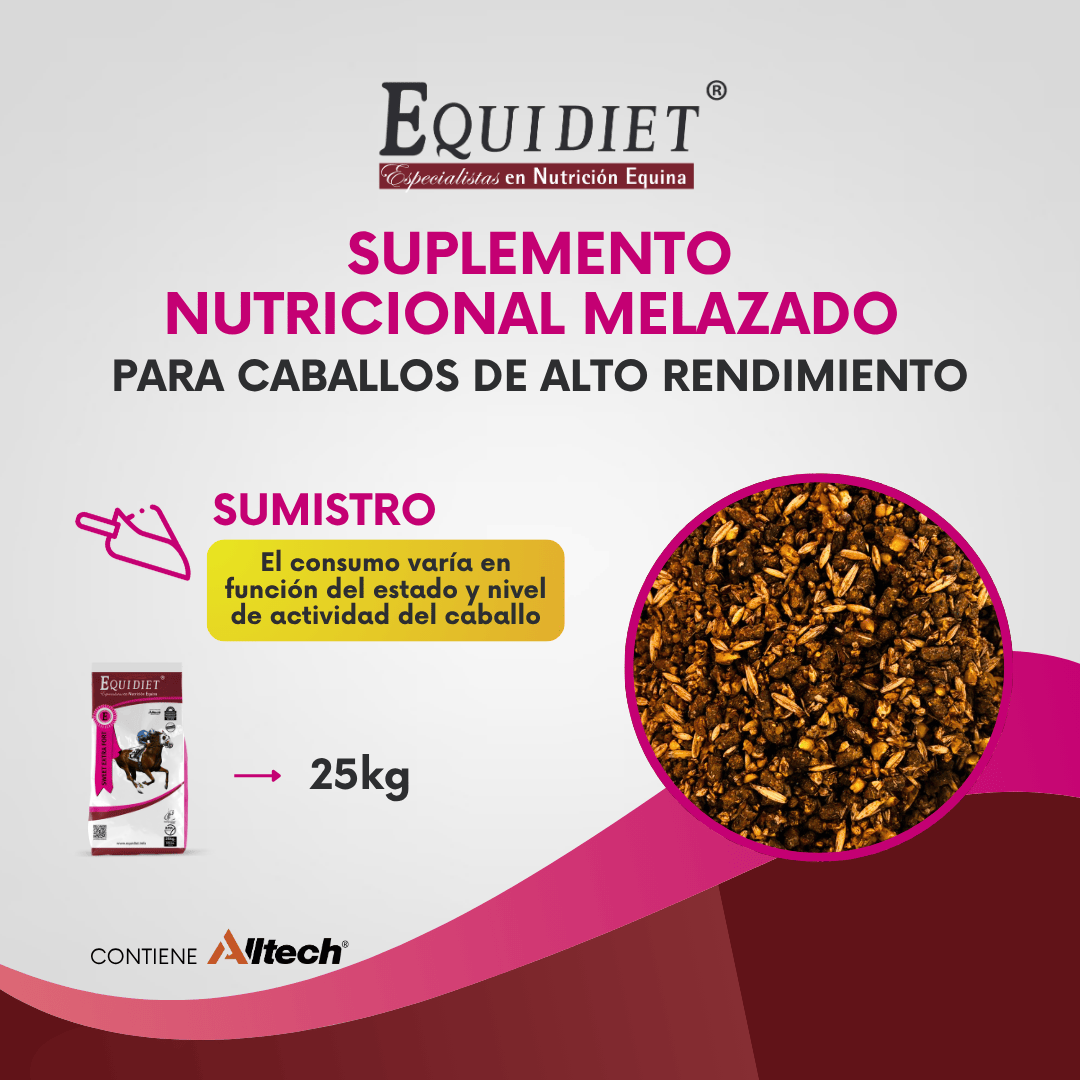 Suplemento Alimenticio Texturizado Melazado para Caballos de Alto Rendimiento.